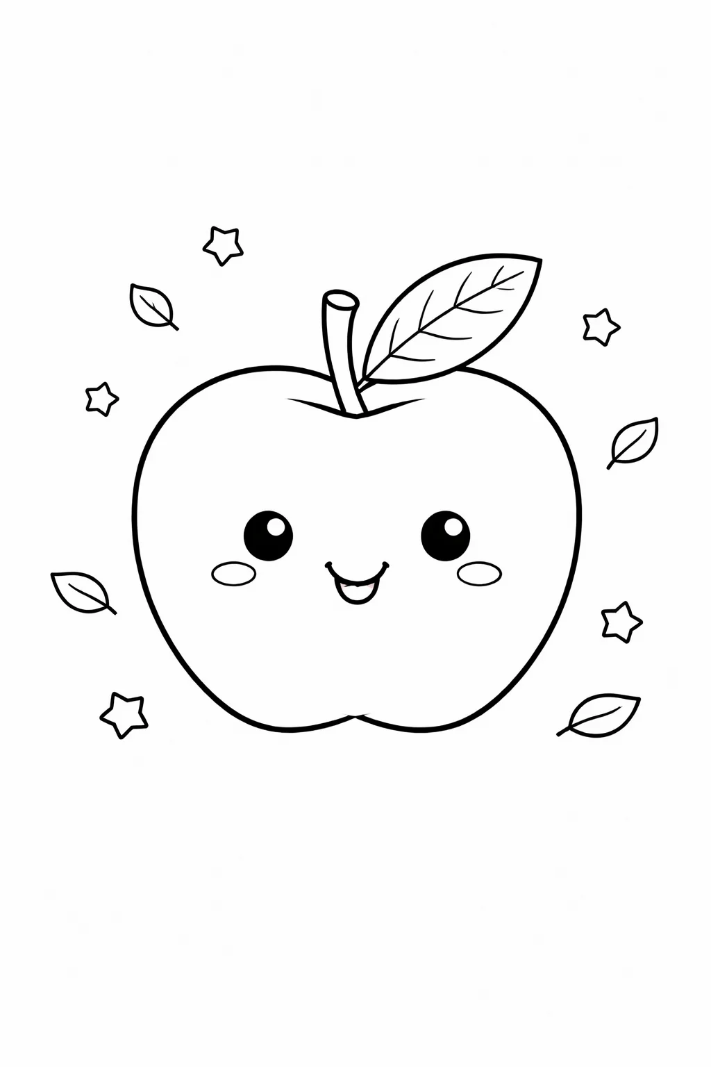 Styl ilustracji: Ilustracja ma przyjazny, kreskówkowy styl. Gruby, wyraźny kontur ułatwia dzieciom precyzyjne kolorowanie bez wychodzenia za linie. Minimalistyczny design skupia całą uwagę na głównym obiekcie – apetycznym jabłuszku z listkiem. To klasyczny wzór, który zachęca do sięgnięcia po kredki.