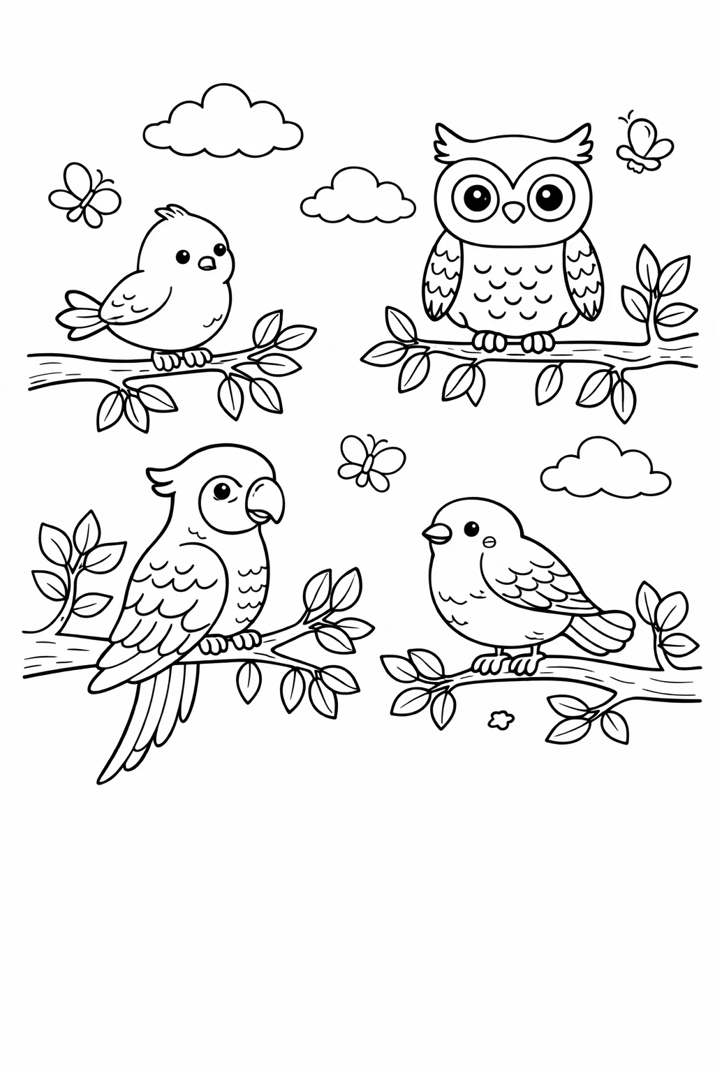 Każda ilustracja łączy w sobie realizm z artystyczną swobodą. Ptaki, takie jak sójka, sikorka, majestatyczna sowa czy egzotyczny koliber, zostały narysowane z dbałością o detale, ale w sposób, który zachęca do twórczej interpretacji. Wyraźne i czyste kontury ułatwiają precyzyjne kolorowanie, a subtelne tła – gałązki, kwiaty i liście – dodają każdej pracy głębi i charakteru.
