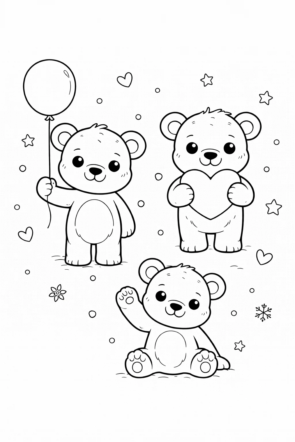 Styl ilustracji: Postawiliśmy na uroczy, kreskówkowy styl, który dzieci uwielbiają. Misie mają duże, uśmiechnięte oczy i miękkie, zaokrąglone kształty, co sprawia, że od razu budzą sympatię. Każdy rysunek to inna historia: miś jedzący miodek, bawiący się na łące czy śpiący na chmurce. Wyraźne, grube kontury ułatwiają precyzyjne kolorowanie, dzięki czemu prace wyglądają świetnie.
