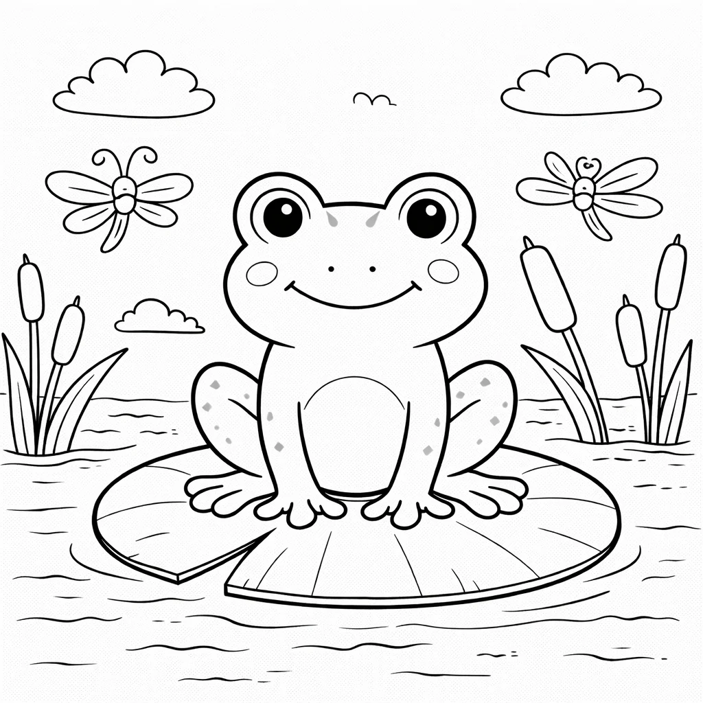 Nasza ilustracja to kwintesencja dziecięcej radości. Uśmiechnięta żabka z wielkimi, ciekawskimi oczami siedzi na liściu lilii wodnej, a proste tło z falami wody i trzcinami nie odciąga uwagi od głównej bohaterki. Grube, wyraźne kontury ułatwiają precyzyjne kolorowanie nawet najmłodszym artystom.Poziom trudności