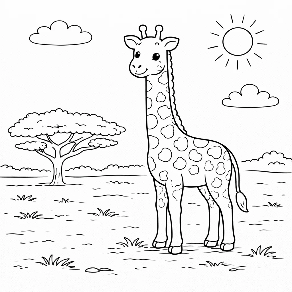 Gotowi na podróż na afrykańską sawannę? Nasza kolorowanka z żyrafą to idealny sposób na pobudzenie wyobraźni i świetną zabawę dla każdego małego artysty. Chwyćcie za kredki i dajcie się ponieść fantazji.